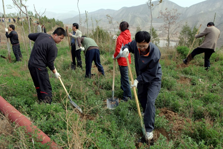 展示航天人立足西北、支持地方建設(shè),共建美好家園之風(fēng)采,5月5日和6日,按照所領(lǐng)導(dǎo)的指示,所政工處組織全所職工前往蘭州市綠色博覽園進行“和諧生態(tài),與自然同行”踏青植樹活動。 陽光明媚,天氣宜人。經(jīng)過四十分鐘的車程,大家來到植樹區(qū)域。隨著鐵鍬的飛舞,樹苗順次就位,職工們按照操作規(guī)程精心完成著從挖坑、放樹、填土、踩實、澆水、培土的每一個步驟。樹苗扎根沃土,伴著清風(fēng)搖曳,盡顯勃勃生機,辛勤勞作的過程與結(jié)果,讓荒蕪的土地增添亮麗的風(fēng)景。 踏青植樹活動使職工從繁忙的工作、生活中走出來,回歸自然,放松身心,舒活筋骨,即強身健體又陶冶心智,更體現(xiàn)出航天人的一種社會責(zé)任。 (政工處) |
